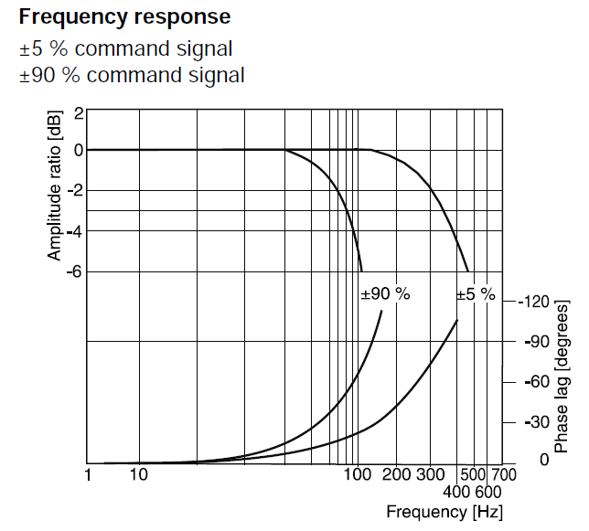 來看一個實際的樣本,以派克漢尼汾的D1FP比例伺服換向閥為例,其頻率響應(yīng)特性曲線如下: