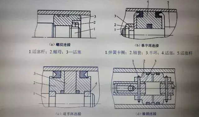 可以把短行程的液壓缸的活塞桿與活塞做成一體,這是簡單的形式。但當行程較長時,這種整體式活塞組件的加工較費事,所以常把活塞與活塞桿分開制造,然后連接成一體。